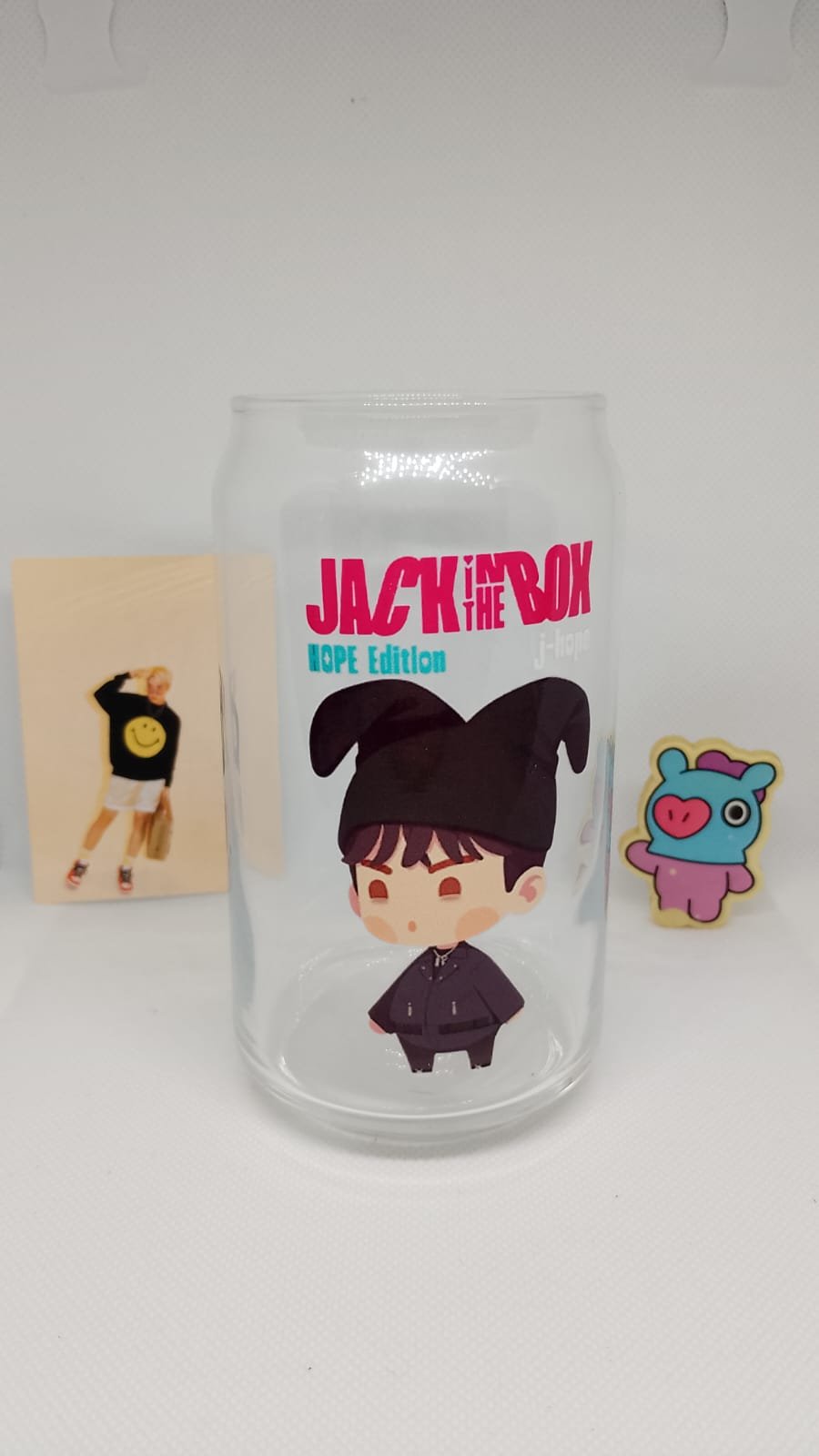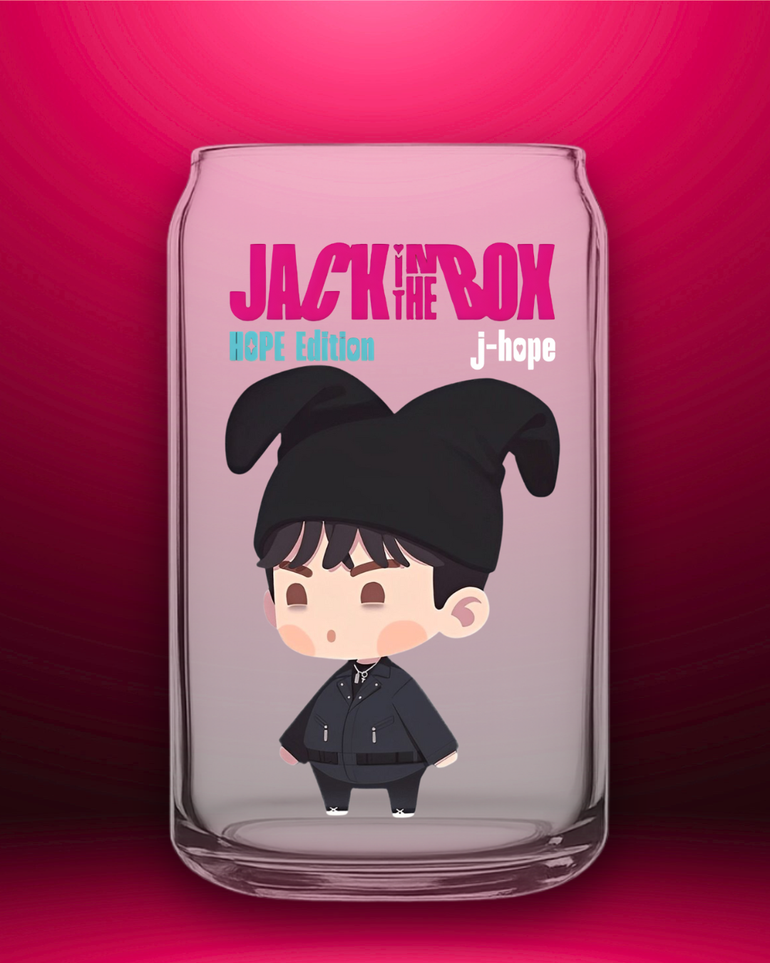 ¡Sacá tu lado más auténtico y potente con nuestro exclusivo vaso de J-Hope! Este diseño rinde homenaje al audaz álbum Jack In The Box y a la estética cruda y de alto contraste del video More. Muestra a Hoseok en su poderosa faceta, suavizado por el estilo de su personaje en BTS In The Seom. Es el merch esencial para ARMY que celebra la expresión artística sin límites.